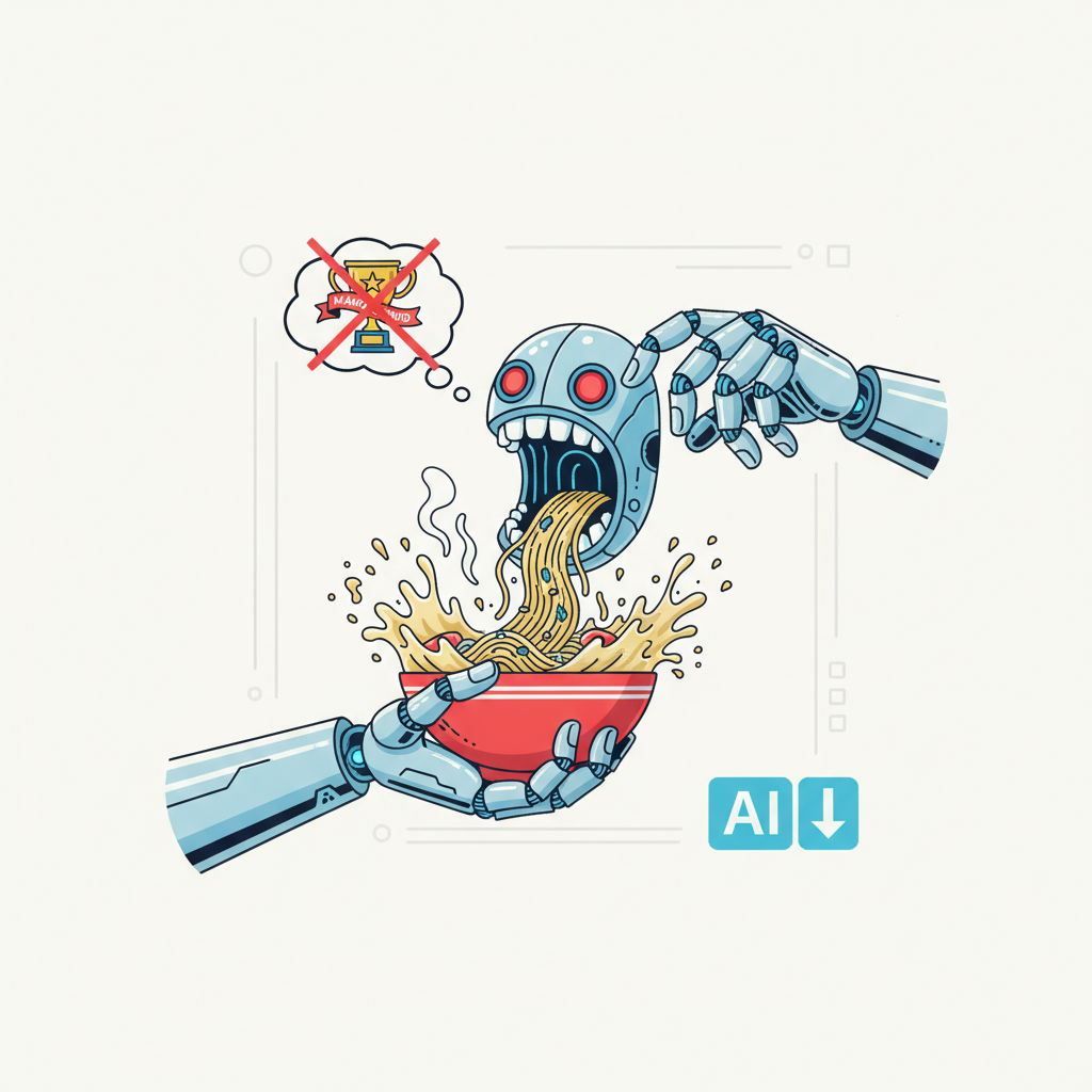 ラーメン手づかみは常識的に考えて無いだろ…とAIが自律する次の段階はまだ遠いよ